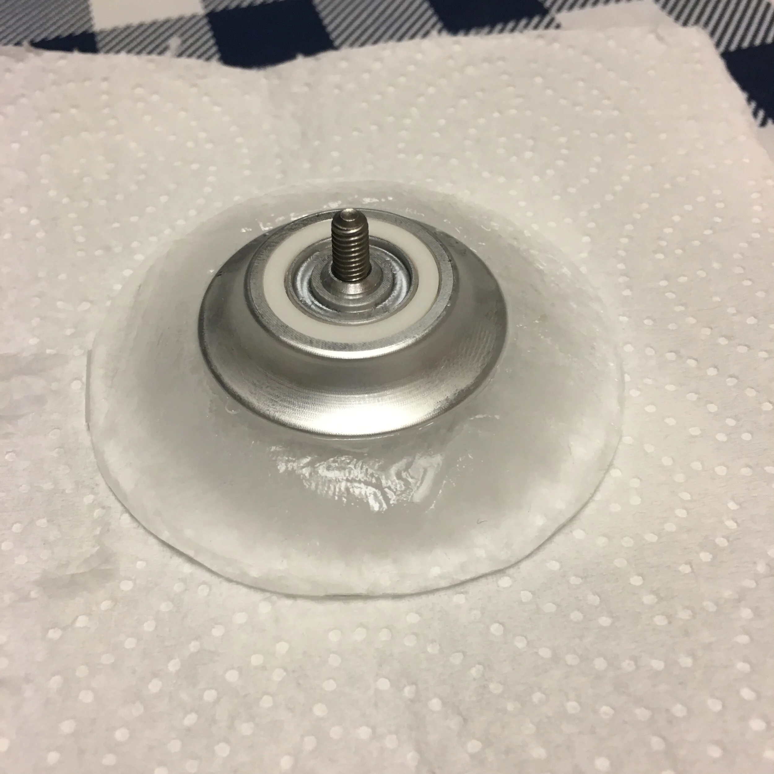 At first I tried using a combination of a rigid top that clamped onto the soft silicone mold to have a more complicated hub