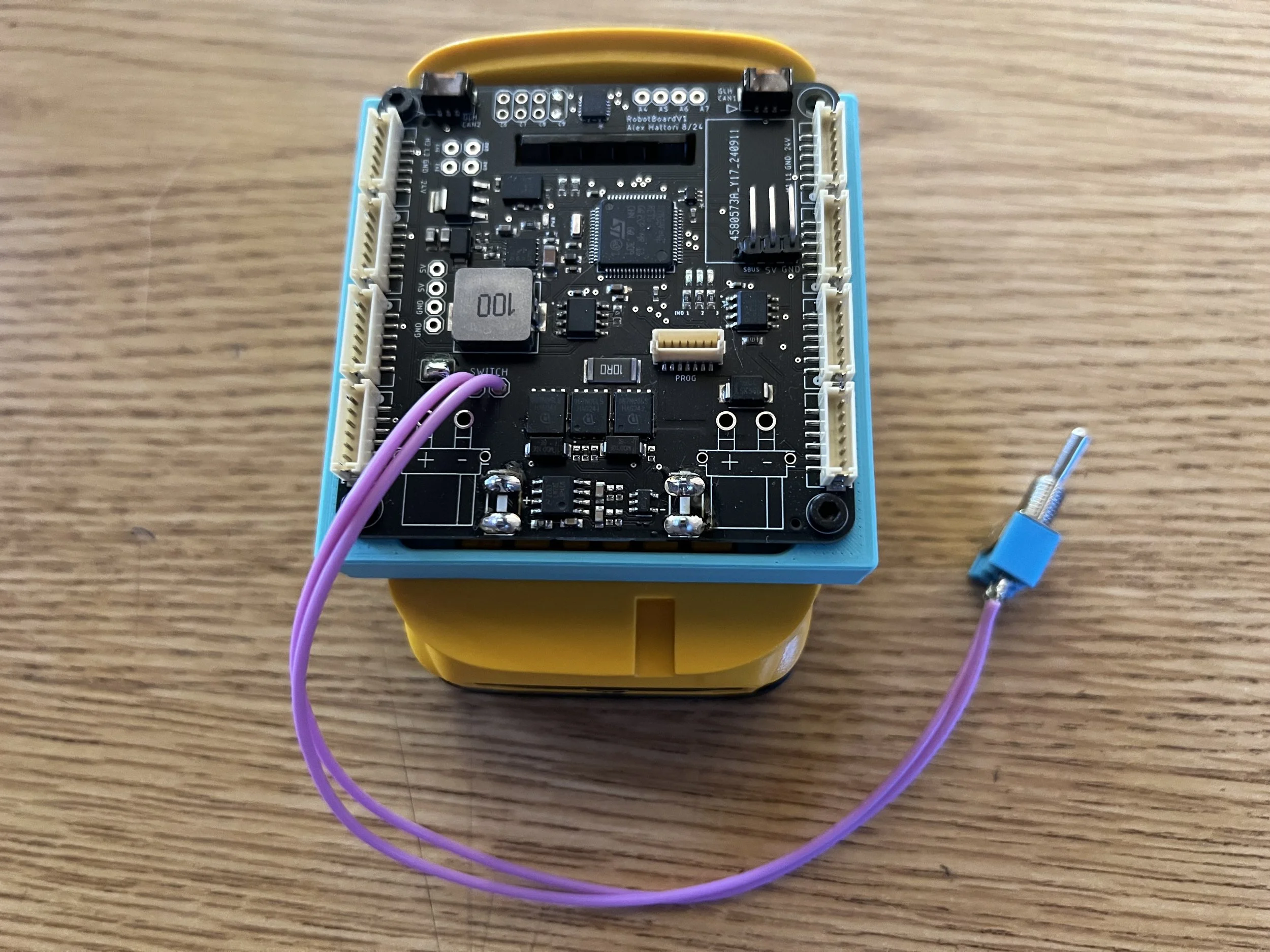 I began by designing a new robot control board around the Dewalt DCBP034, basically the smallest 24 V drill battery available. The board includes an STM32F446, two CAN buses, a precharge circuit, an IMU, voltage regulators, and an RC receiver—the bare essentials for controlling a robot.
