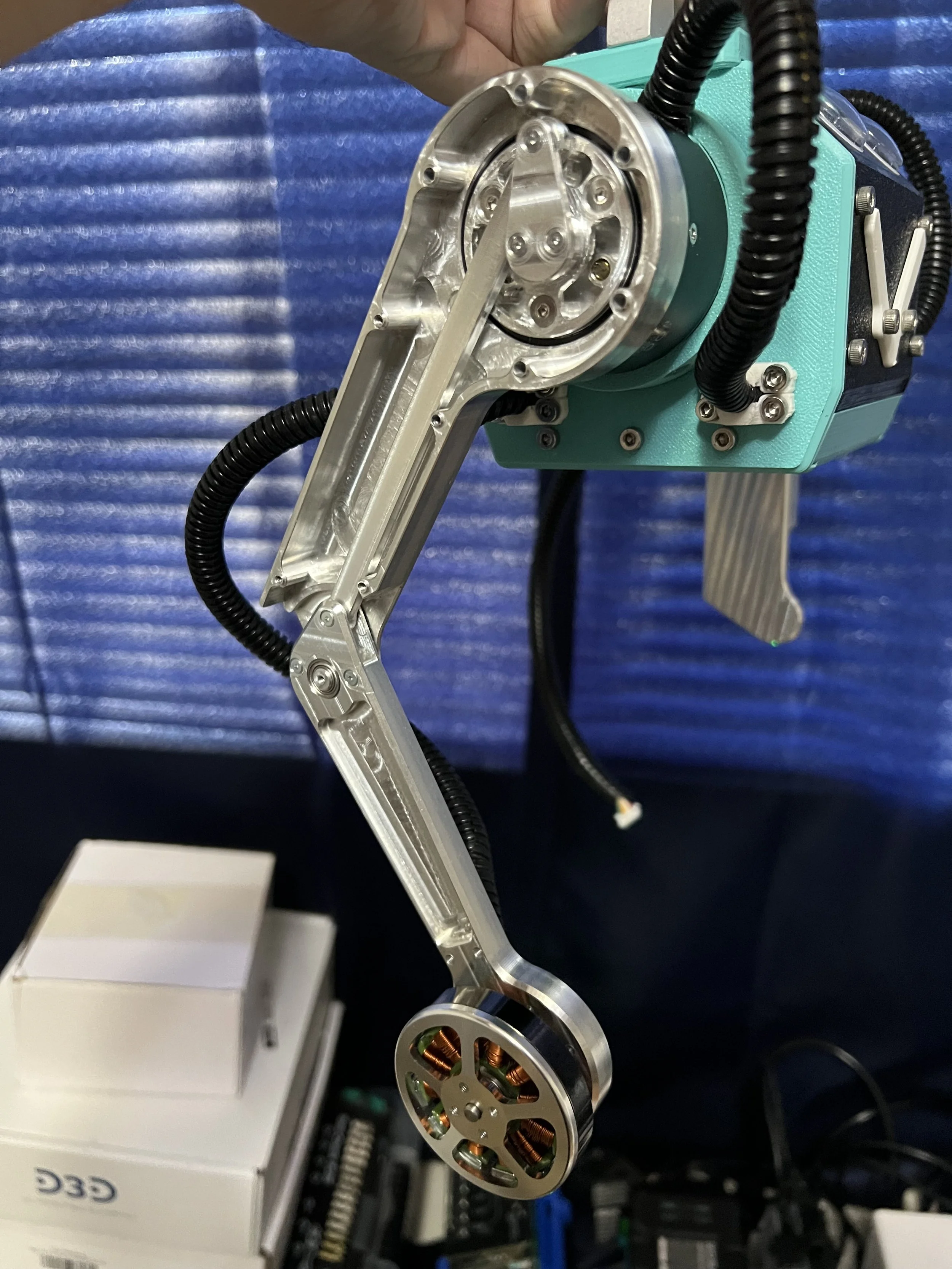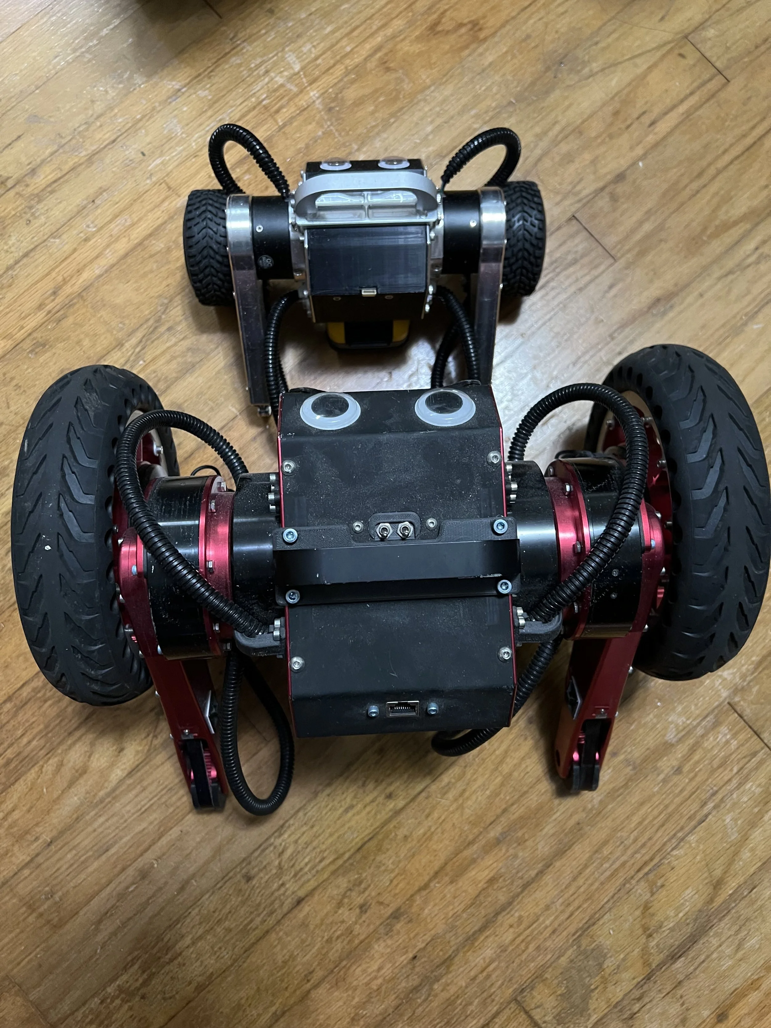 I had already designed my own controllers for the GIM4305s while working on Pupper, so I reused those to control the robot. For the wheels, I went with the same generic 5010-sized (rotor) motors I had been using on my swerve drives.